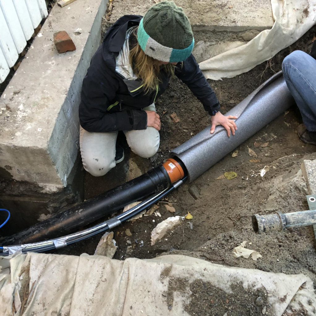 Vi har hatt noen uhell som vi må ta på egen kappe. Vannrørene frøs og sprakk inne i veggene, noe som førte til råte og sprukne fliser. Hele anlegget ble renovert av en dugnadsgjeng, og Morten Rør la opp nytt rør-i-rør-system.