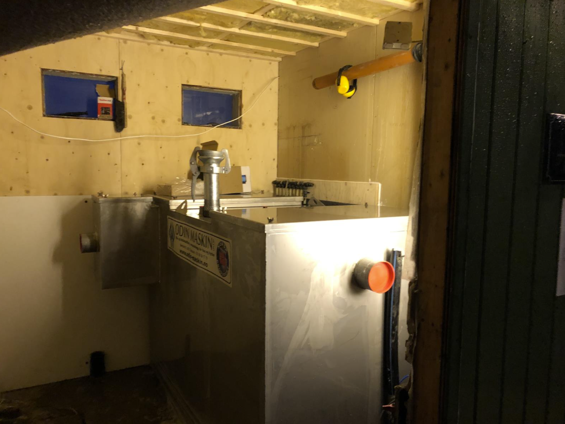 Det gamle betongfundamentet som stod igjen, ble brukt til å lage to tanker: en mellomtank på 1,3 m³ og en fordrøyningstank på 2 m³.